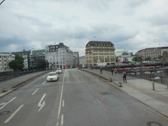 Die Radfahrer-Crew radelte u.a. um die Alster. Diese Strecke wurde auch während einer Stadtrundfahrt mit dem Doppeldeckerbus befahren.